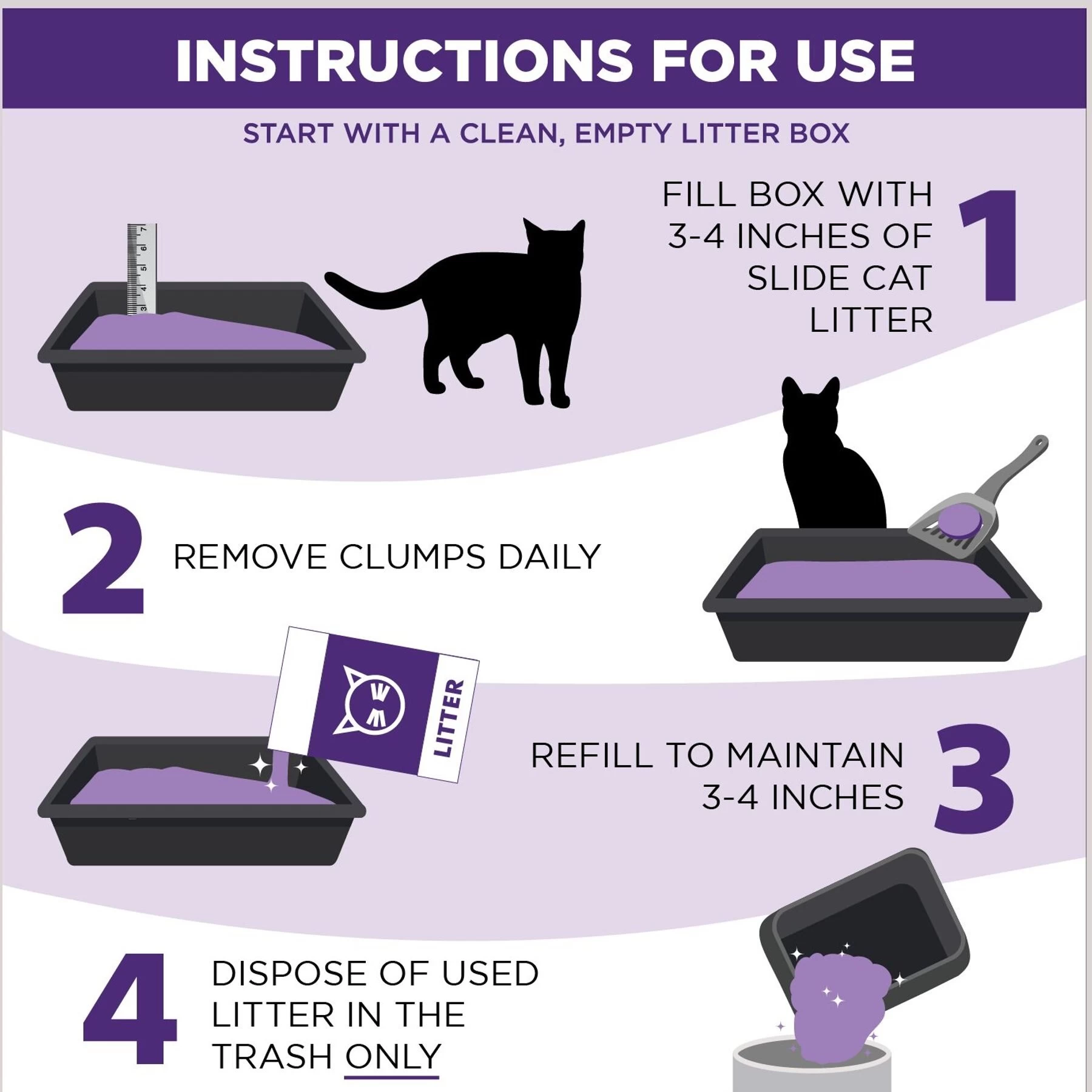 - Moisture activated micro-granules form a seal around waste to create tight clumps for easy scooping.