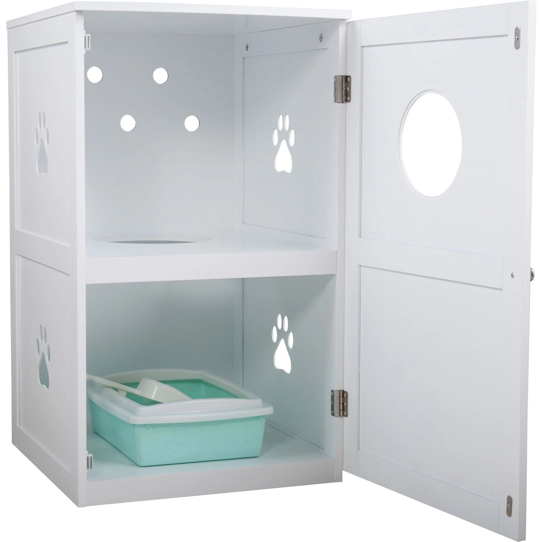 - Multifunctional litter box enclosure doubles as an end table or nightstand.