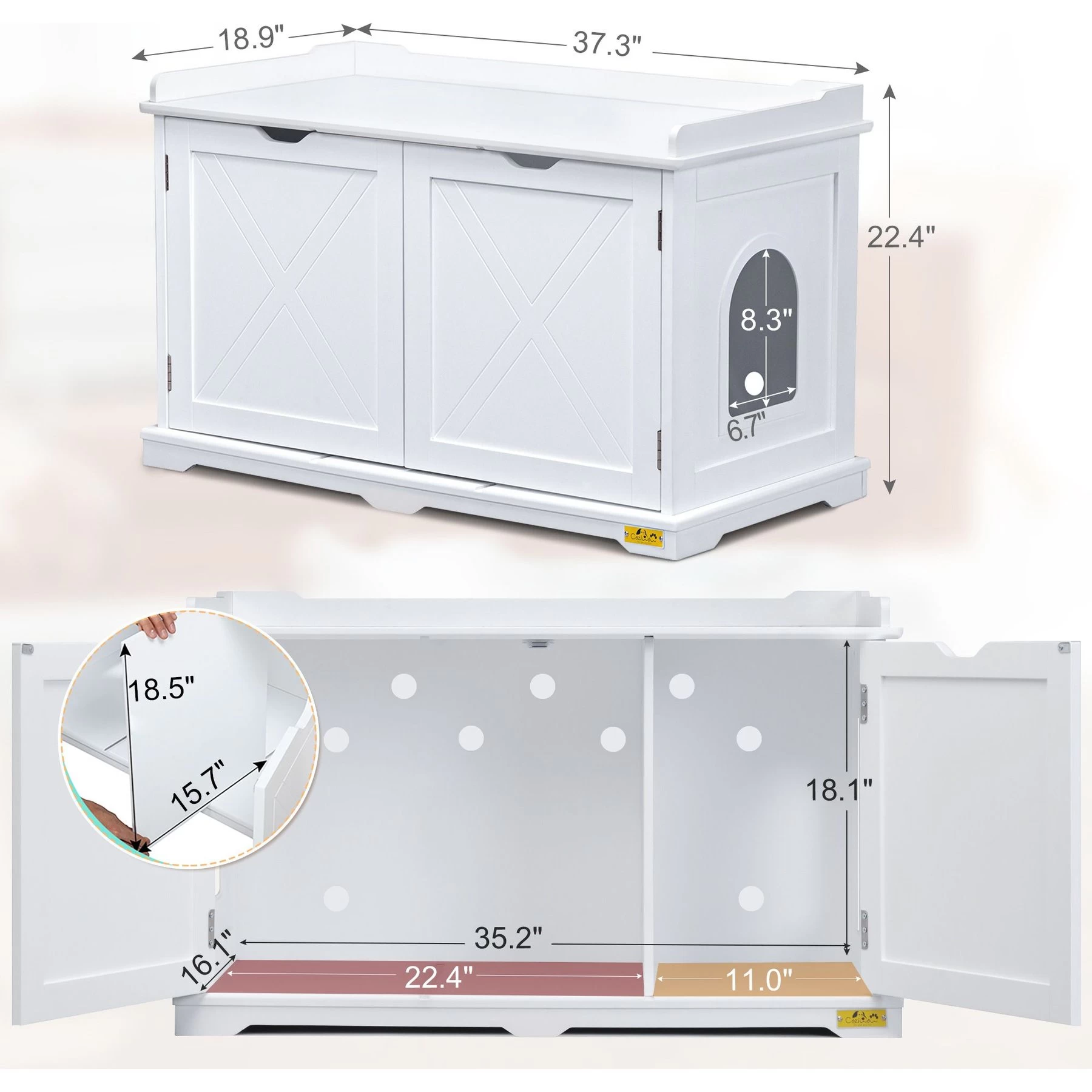 Coziwow By Jaxpety Wooden Storage Bench Cat Litter Box