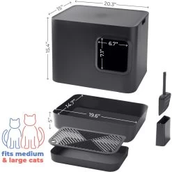 - Enclosed design gives your kitty a purr-ivate place to do her business and helps keep litter contained.