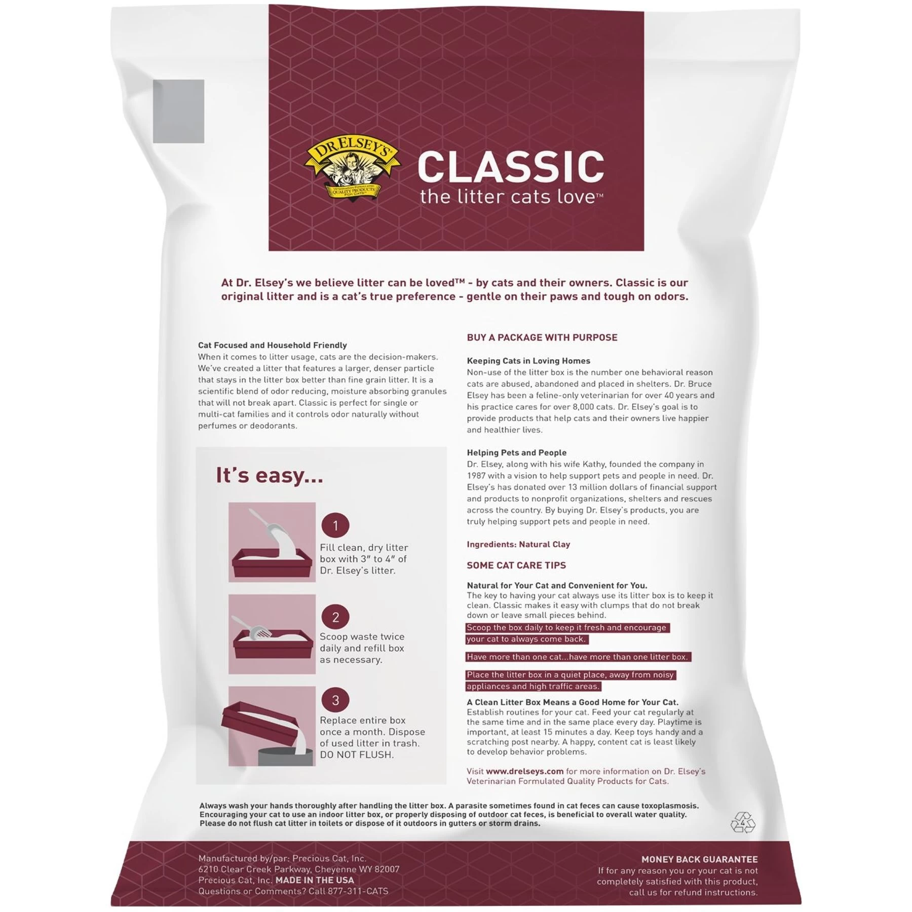 The Dr. Elsey’s Classic UnScented Clumping Clay Cat Litter helps to control odors naturally without any perfumes or deodorants. It’s purr-fect for multi-cat homes and those with sifting or mechanical litter boxes (sold separately). This formula combines heavier non-tracking granules with medium grain clay to create paw-some clumps that won’t break apart. The litter also helps to keep moisture from reaching the bottom of the litter box for easier cleaning.