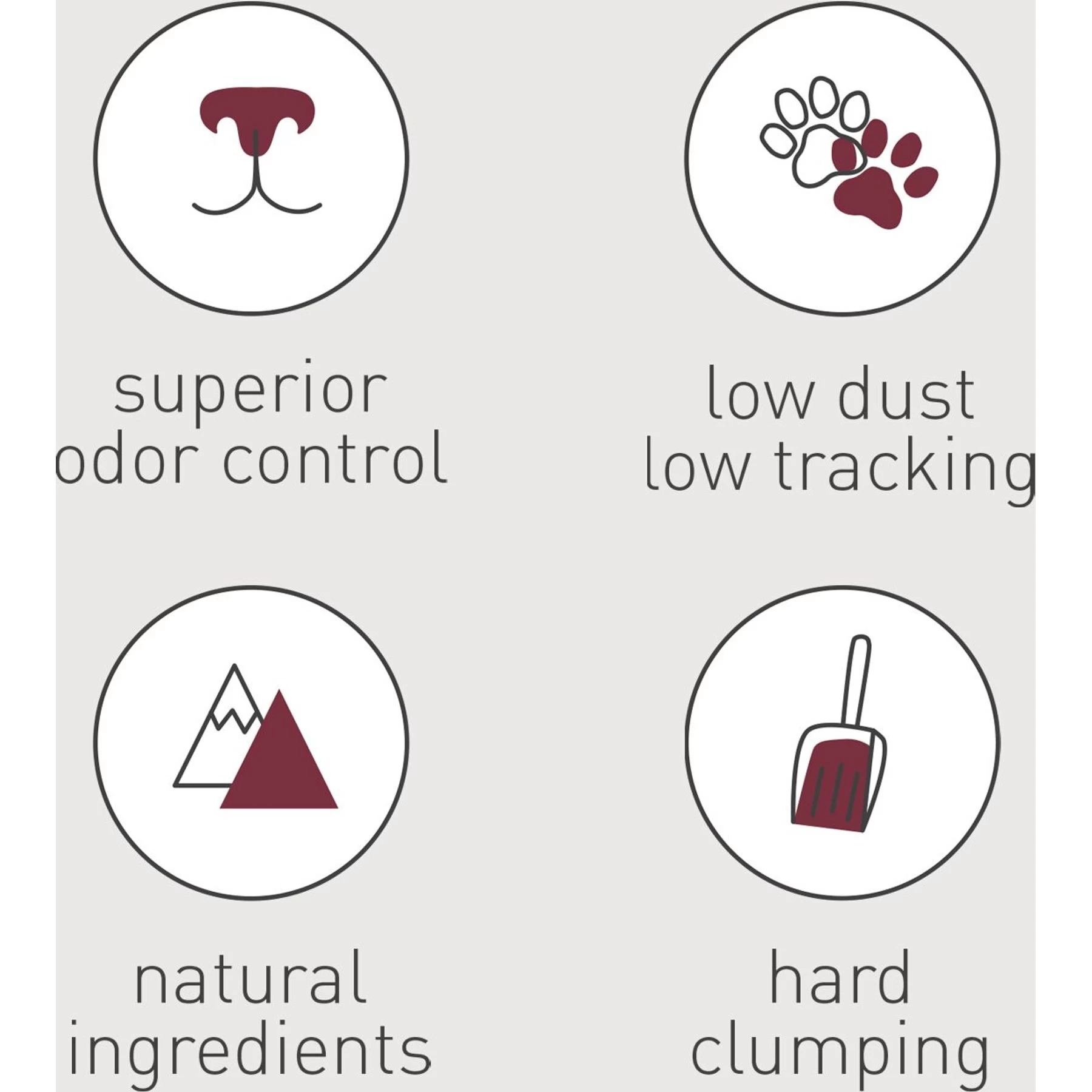 - Hard clumping, low tracking formula.