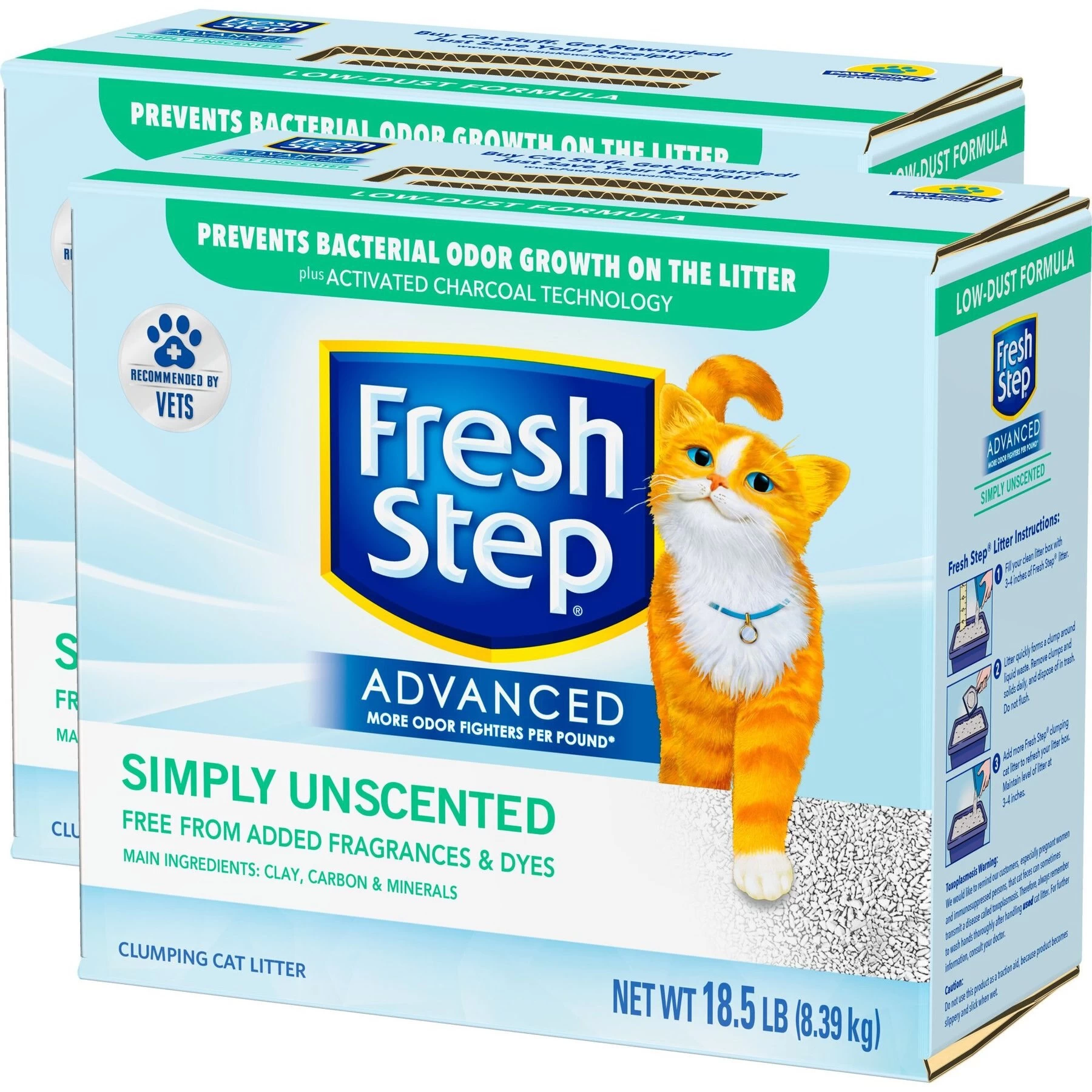 Fresh Step Advanced Simply Unscented Clumping Clay Cat Litter, 18.5-lb Box