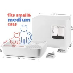 - Fits most standard litter boxes and has a hinged double door to make cleaning super easy.