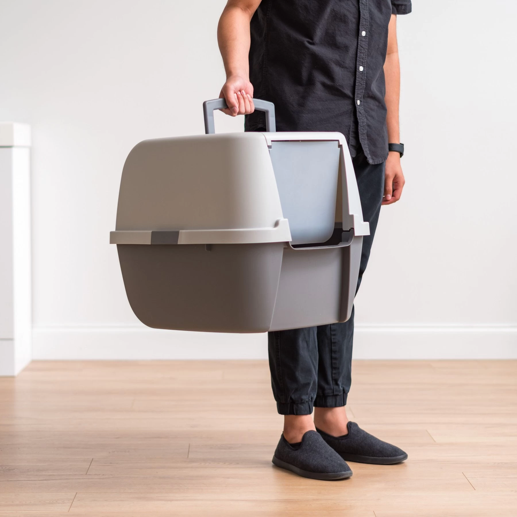IRIS USA Enclosed Cat Litter Box With Front Door Flap & Scoop, Gray, Jumbo