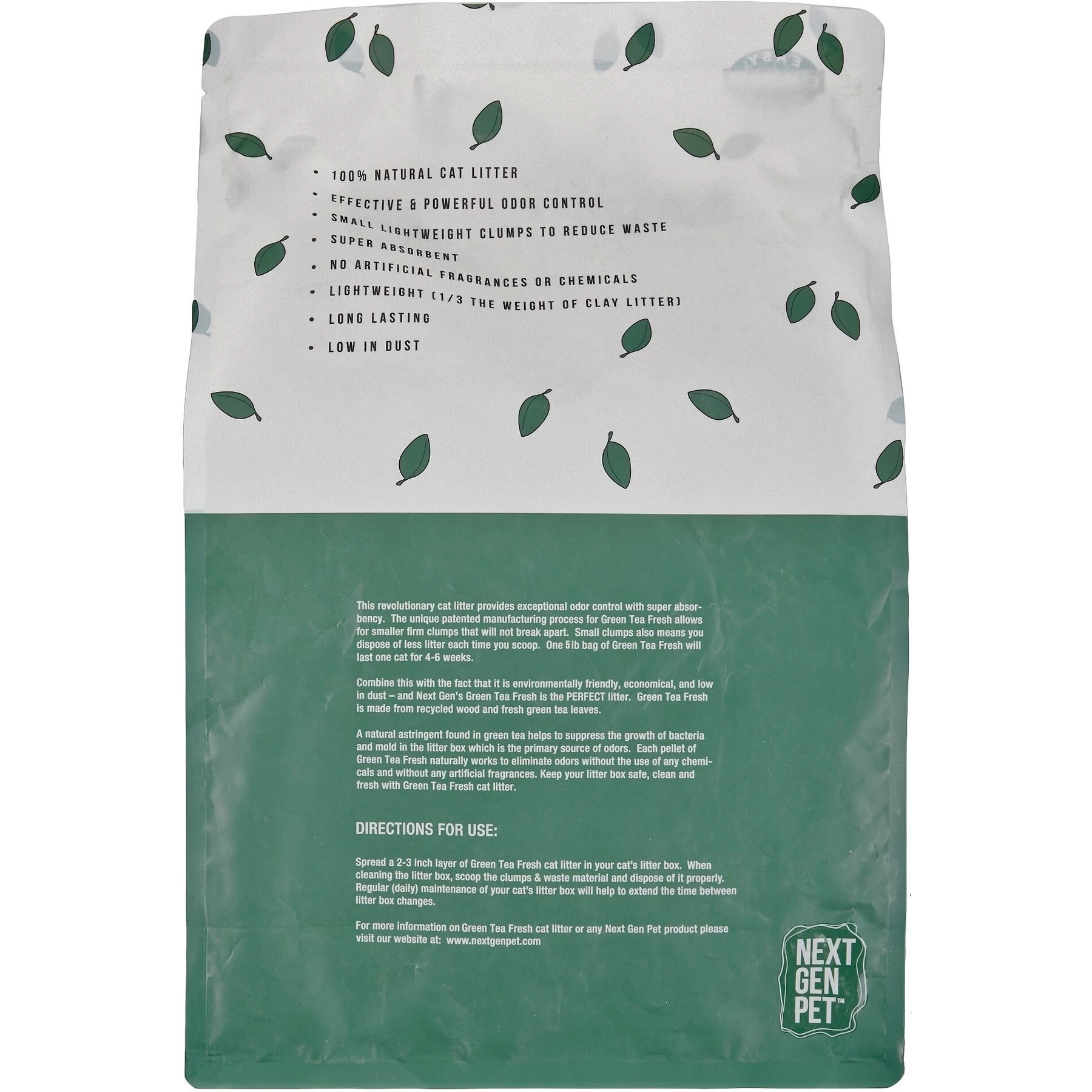 Next Gen Pet Products Pet Products Green Tea Fresh Unscented Clumping Wood Cat Litter