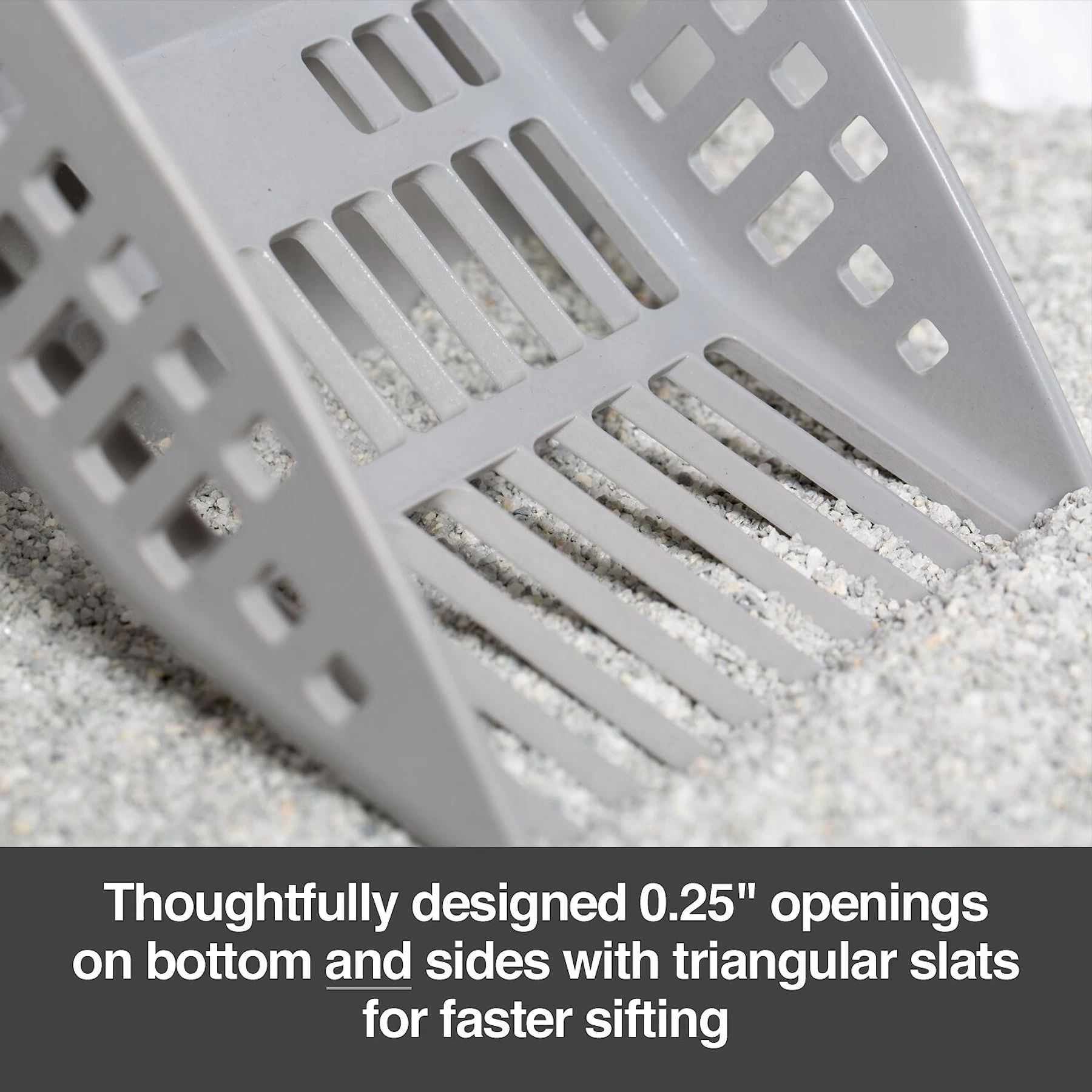 - Designed with a flat, sharp front edge that scoops underneath—not through—clumped litter and allows the scoop to hang flush against the wall for storage—with an included, space-saving wall mount.