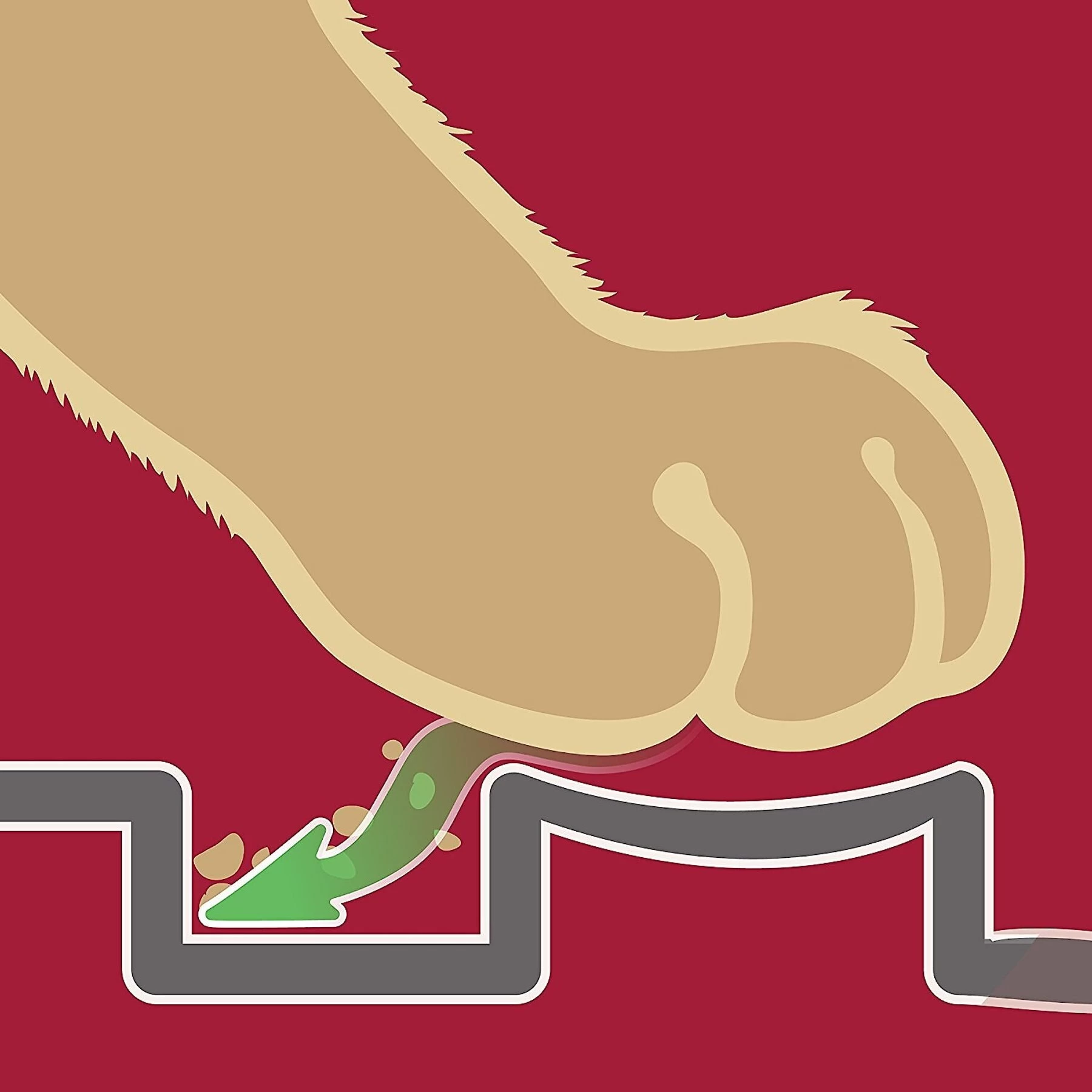 - This mat’s unique design is meant to spread your cat’s paw-pads apart to force stray litter off.