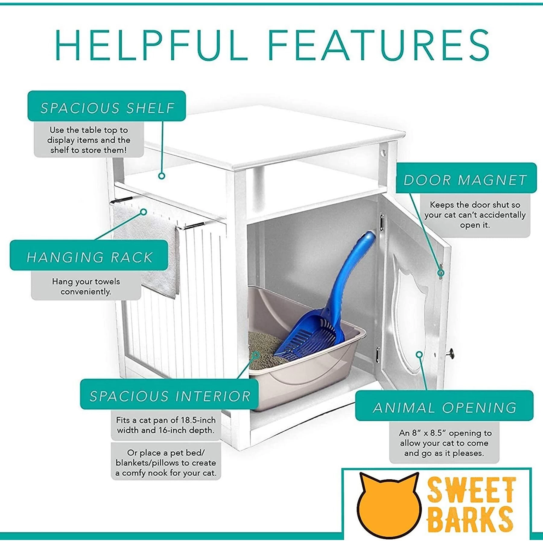 - Multifunctional cat litter box enclosure doubles as a stylish furniture piece in your home.