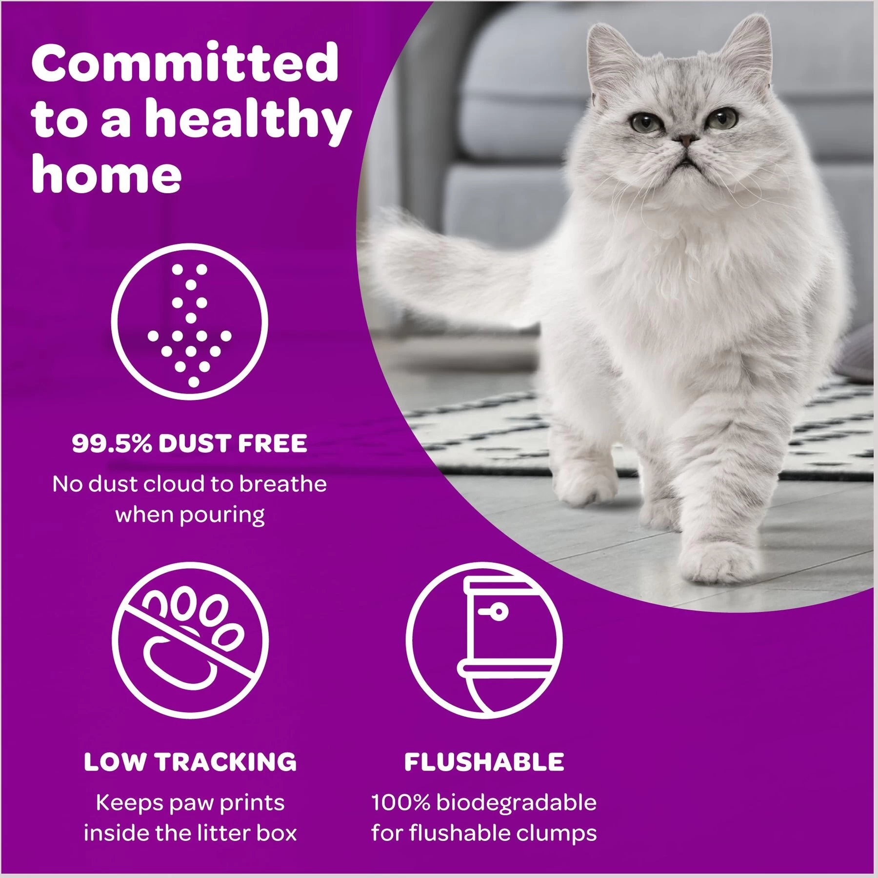 | Litter Feature | Natural, Odor Control, Clumping, Dust Free, Scented, Multi-Cat, Low Tracking, Flushable, Lightweight |