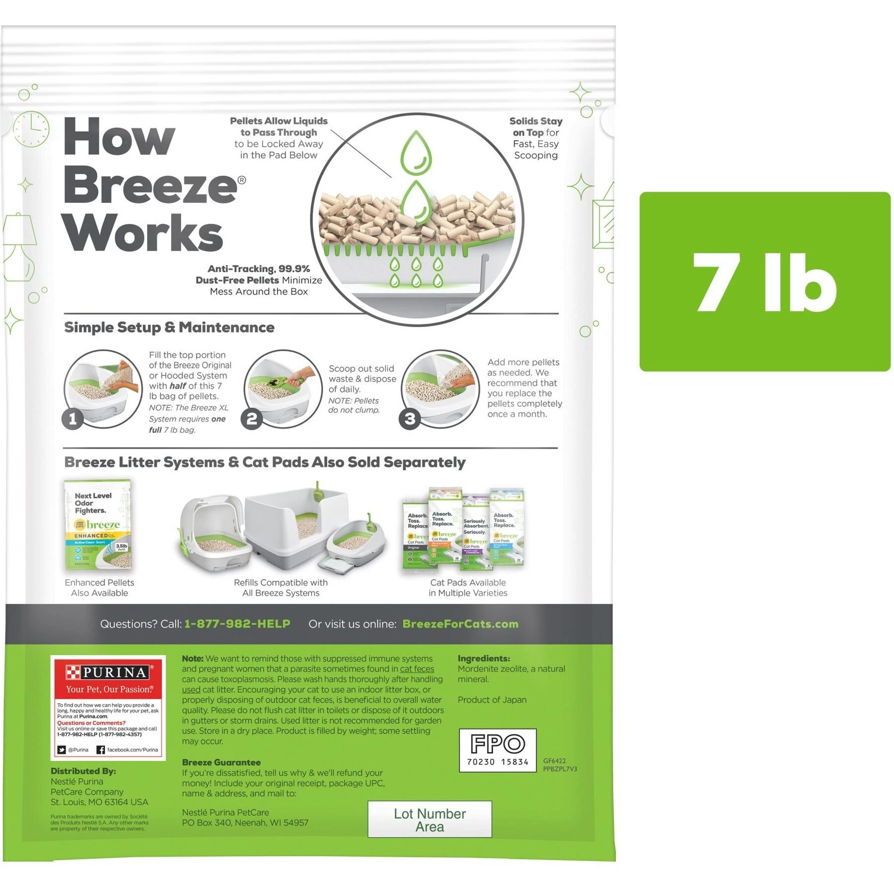 - This bag of mess-minimizing Breeze litter pellets lasts up to one month and is designed to work with the Tidy Cats Breeze litter system (sold separately).